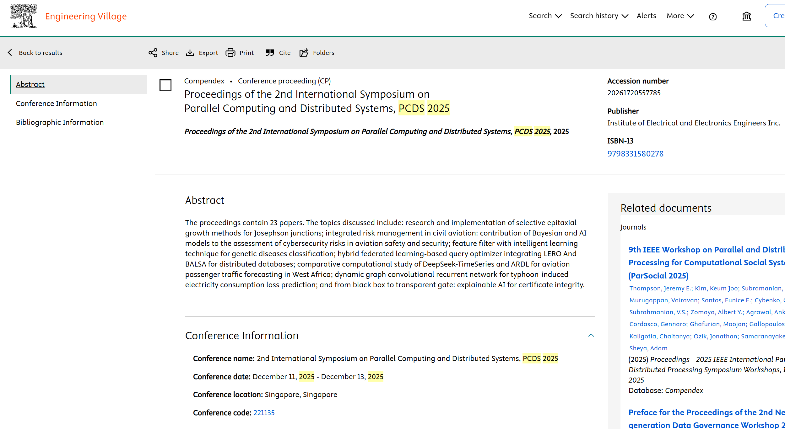 Welcome to the 3rd International Symposium on Parallel Computing and Distributed Systems (PCDS 2026)! We are excited to announce that the symposium will be held on November 16-18, 2026 in Singapore. In an era where AI workloads demand massive computational power and data generation continues to explode, parallel computing and distributed systems have become the bedrock of modern technology. Parallel computing enables the high-performance processing essential for training large language models, scientific simulations, and real-time analytics, while distributed systems power cloud-native architectures, edge computing, blockchain networks, and the Internet of Things. Together, these disciplines are driving breakthroughs in autonomous systems, personalized medicine, and smart cities, shaping the next wave of digital transformation. Building on the strong foundation and growing recognition of the previous editions, PCDS 2026 continues the symposium’s mission to advance research and innovation in parallel computing and distributed systems. Following the achievements of earlier PCDS events, this third edition further expands the scope and depth of the symposium, offering an enriched program and broader engagement across the global research community. PCDS 2026 aims to serve as a premier international forum for researchers, industry professionals, and practitioners to present and discuss state-of-the-art developments, share novel ideas, and exchange practical experiences in parallel and distributed computing. Through interdisciplinary collaboration and knowledge exchange, the symposium seeks to address emerging challenges and identify new opportunities for future technological breakthroughs. As an official conference supported by IEEE, PCDS 2026 has been listed on the official website of IEEE with the ID 72342. All accepted papers after proper registration and presentation will be included in PCDS 2026 Conference Proceedings which will be submitted to IEEE Xplore. The proceedings will be reviewed by the IEEE Conference Publication Program for IEEE Xplore, EI Compendex and Scopus. We warmly invite you to join us at PCDS 2026 in Singapore to engage in insightful discussions, foster meaningful collaborations, and contribute to shaping the future of parallel computing and distributed systems.